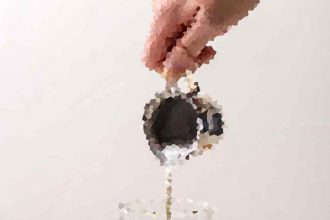4. Pour the mixed juice over the ice cubes.
